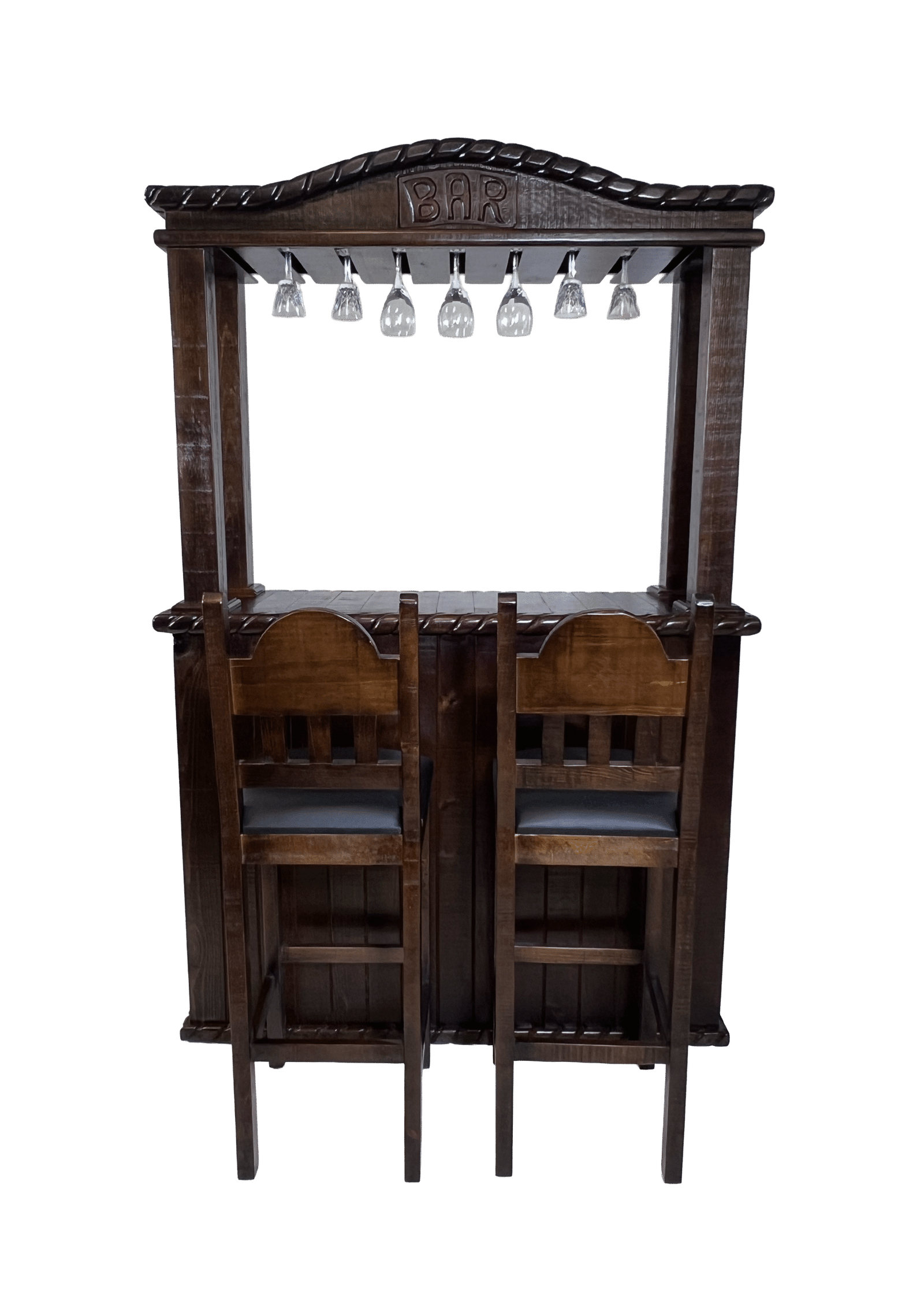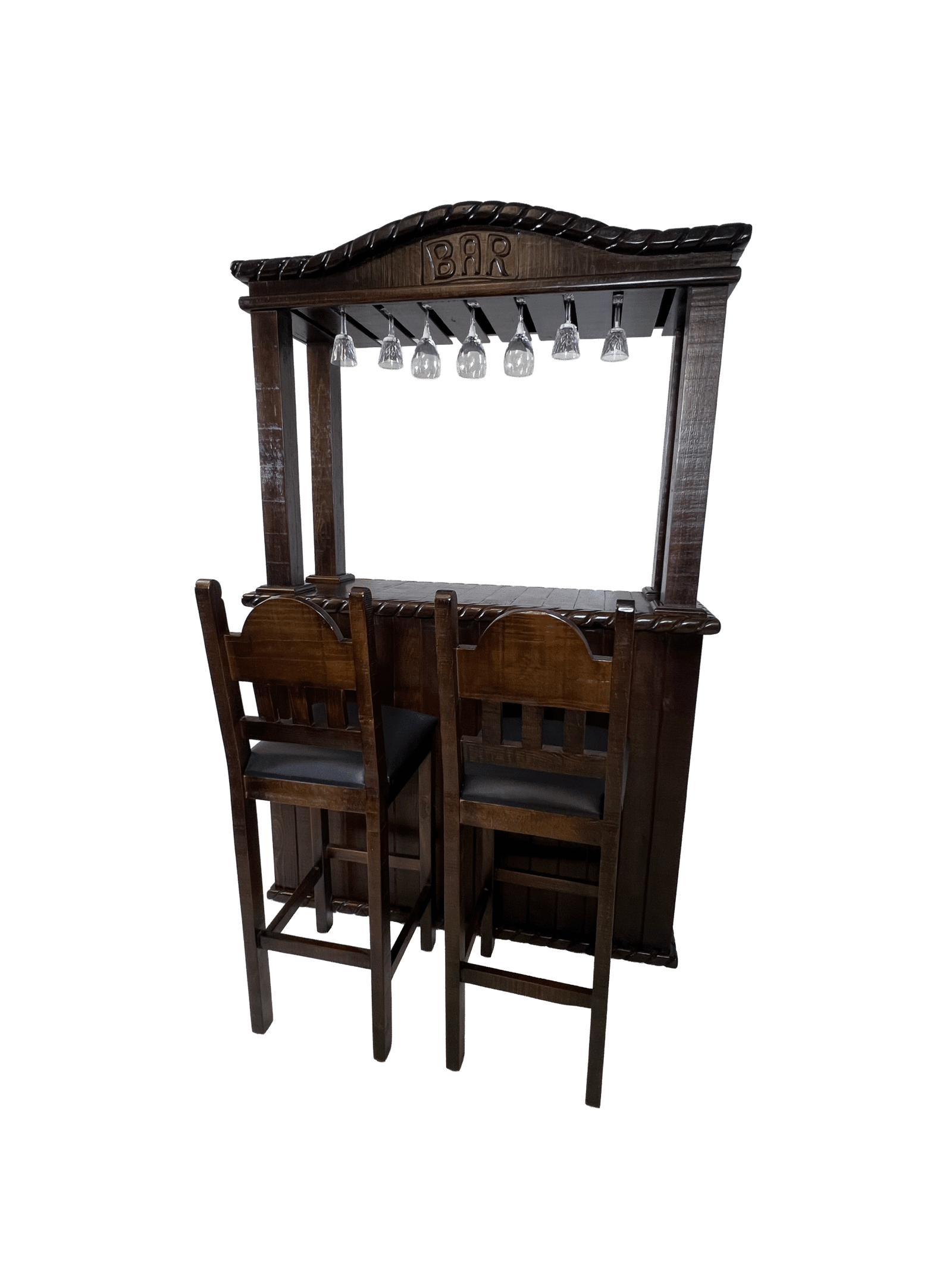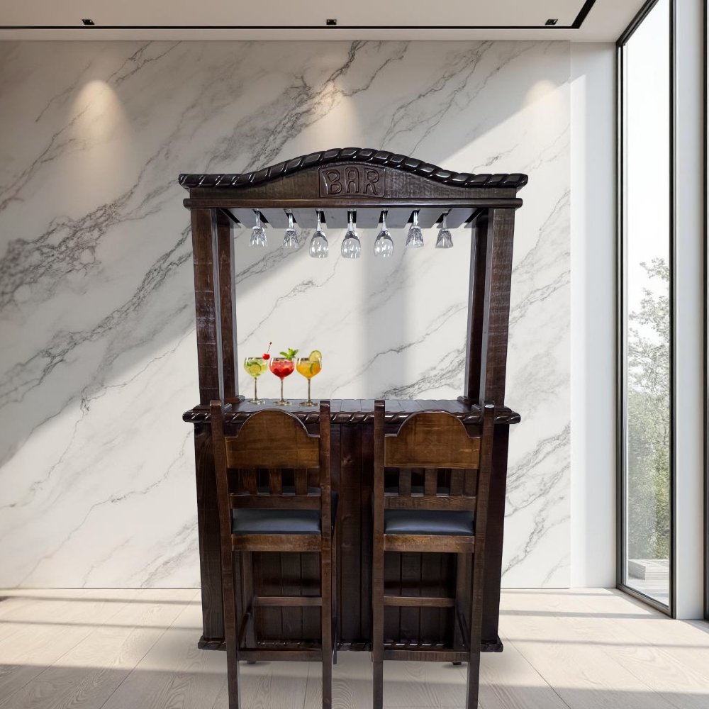 | Características generales | 100% madera sólida, Hecho a mano por artesanos mexicanos, Barra con diseño decorativo, Bancos ensamblados desde fábrica, Altura cómoda para uso tipo bar, Medidas aproximadas: |