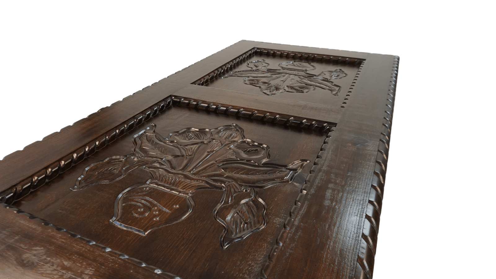 This handcrafted dining set is a beautiful blend of elegance, tradition, and quality. Made from 100% solid wood, each detail of the calla lily design is hand-carved by Mexican artisans, making every piece truly unique.