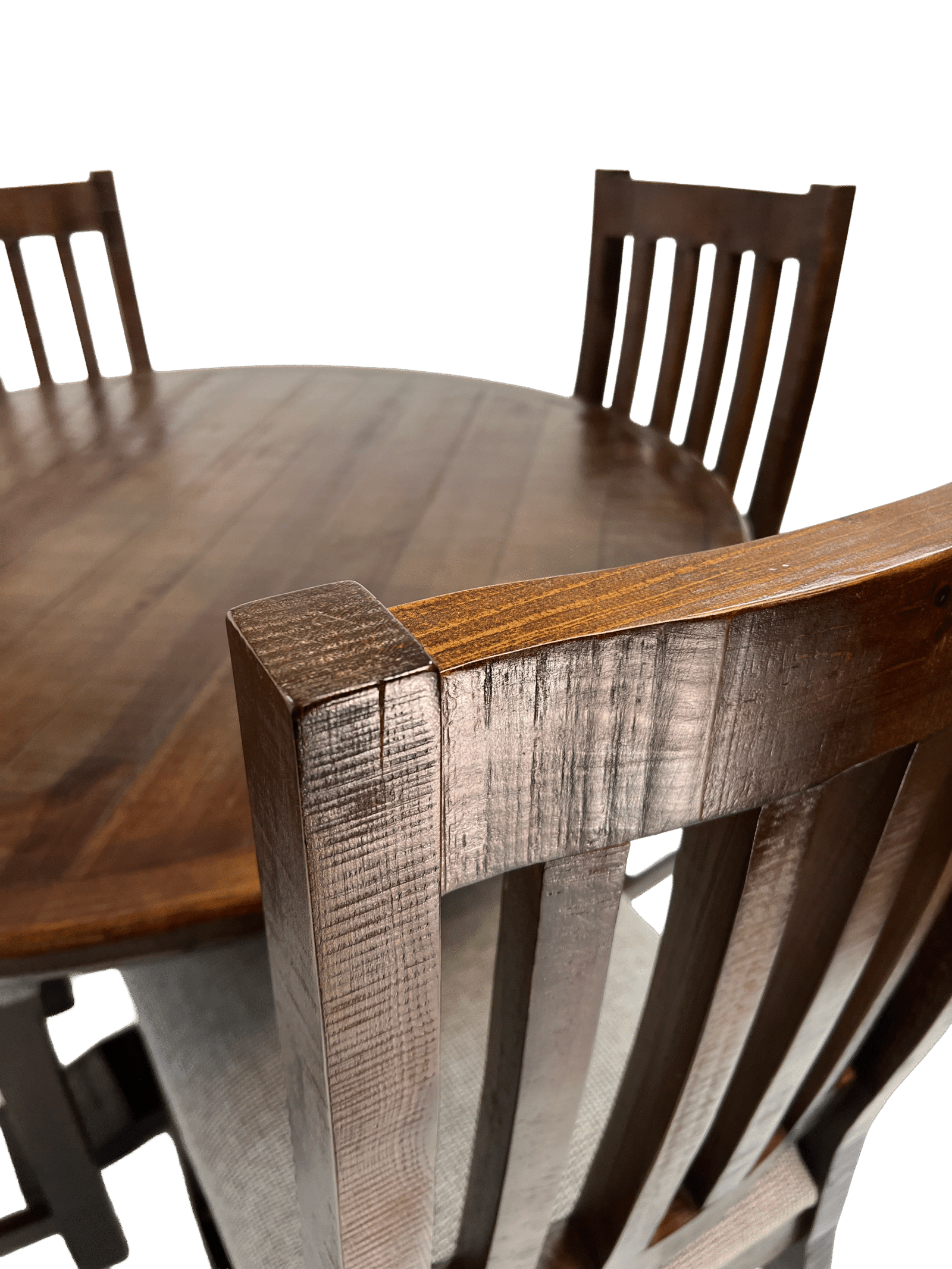 Round Pedestal Dining Set – 4 Ranch-Style Chairs, Handcrafted Solid Wood