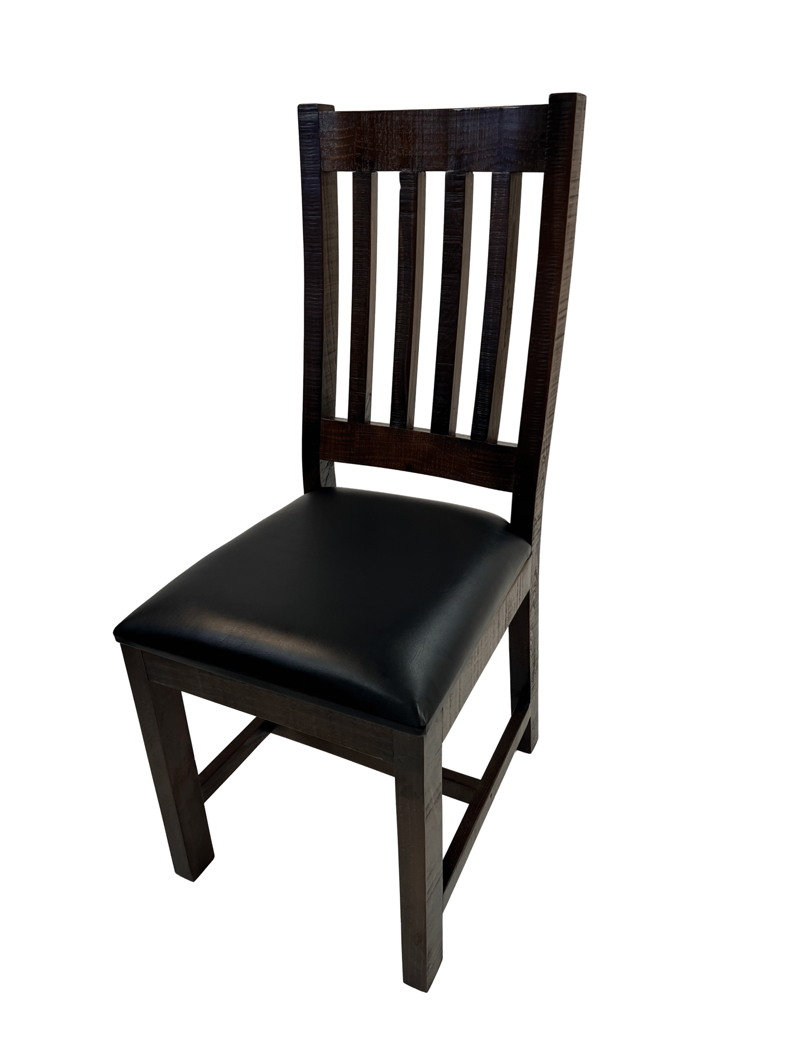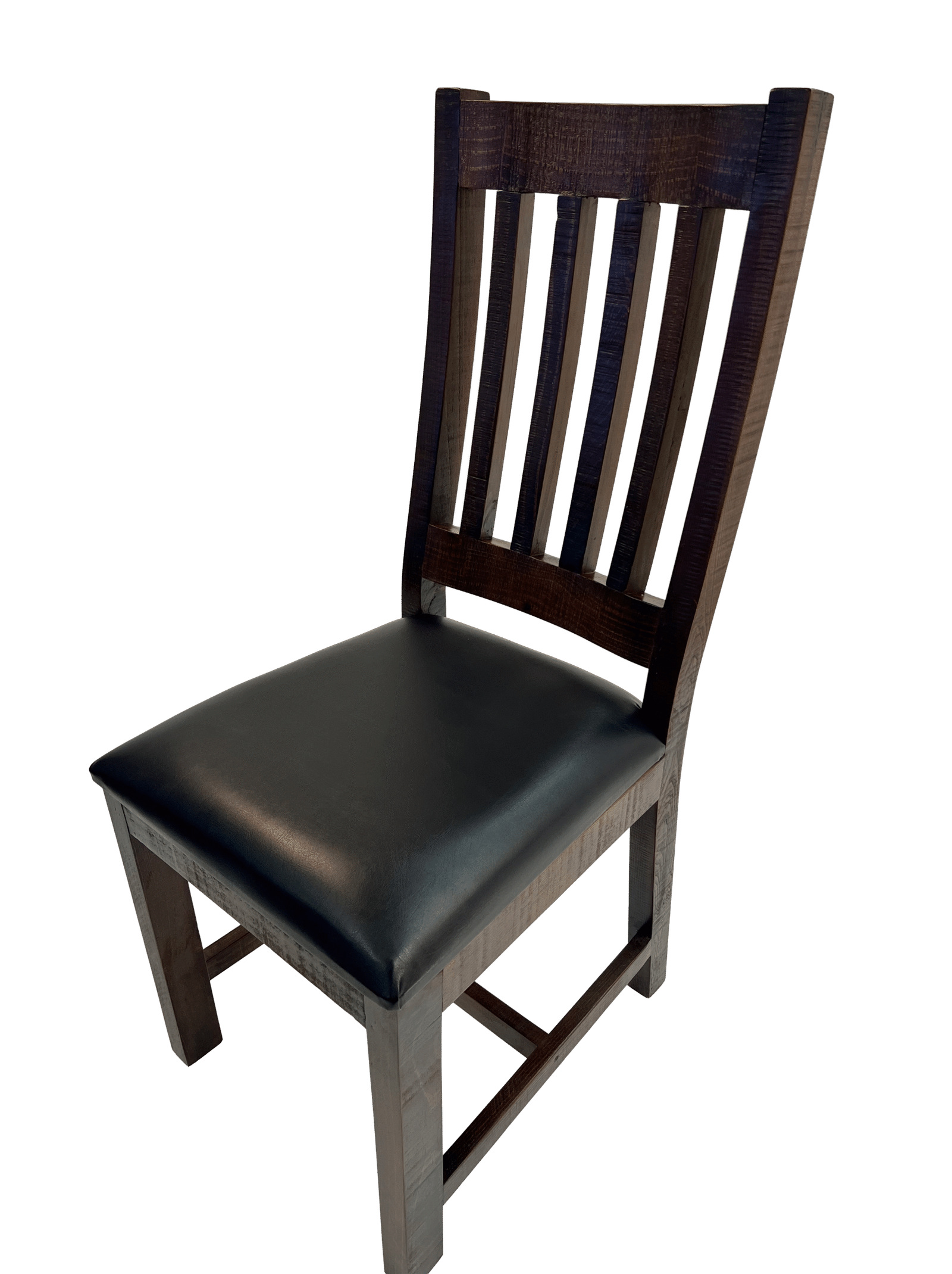 Las sillas estilo rancho vienen ensambladas desde fábrica, con respaldo completo y tapizadas en tela clara, ofreciendo comodidad y un toque rústico que armoniza perfectamente con el diseño de la mesa.