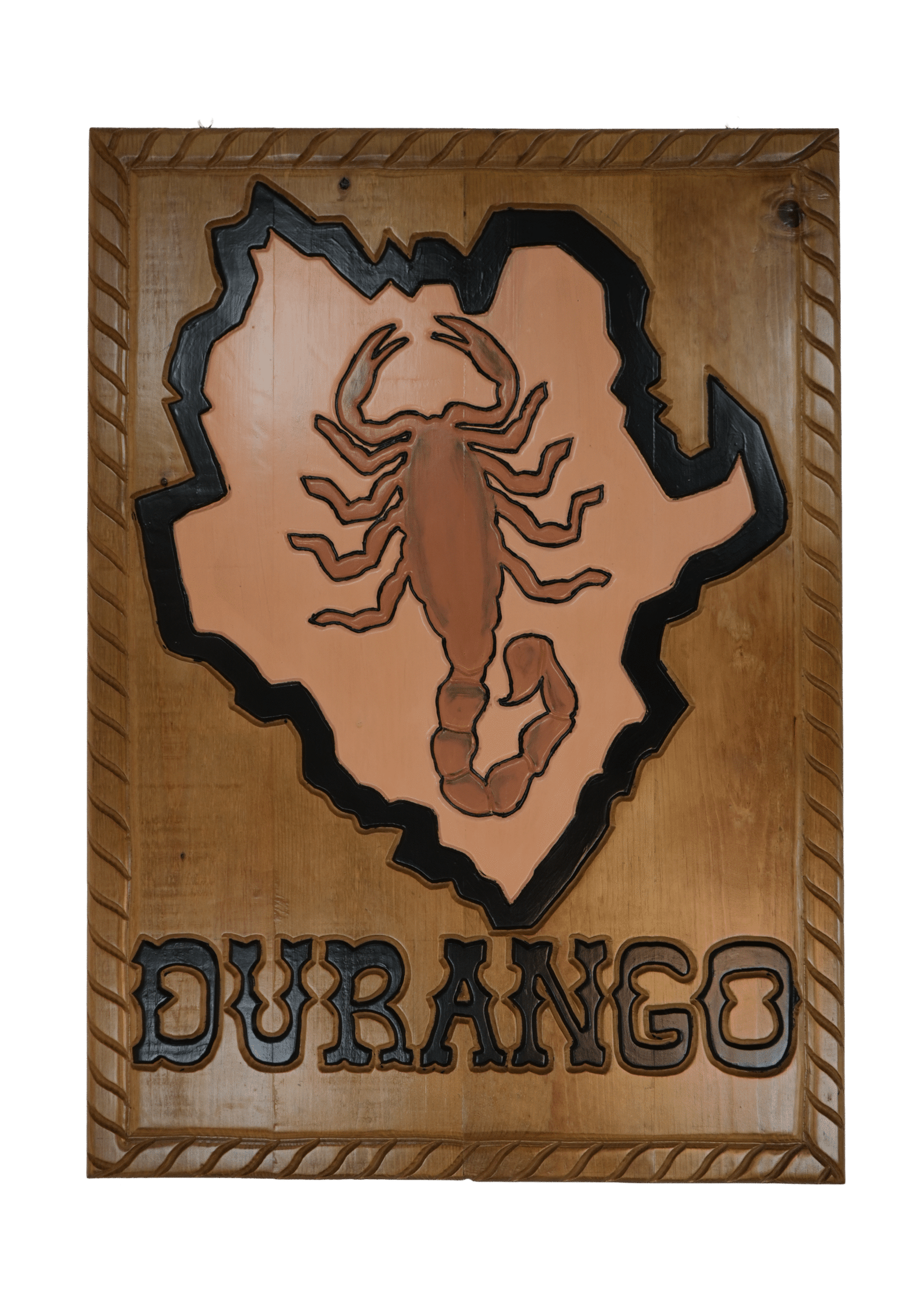 Cuadro artesanal tallado y decorado a mano, inspirado en la riqueza cultural y paisajística de Durango, México. Una pieza única que celebra la tradición y el arte mexicano.
