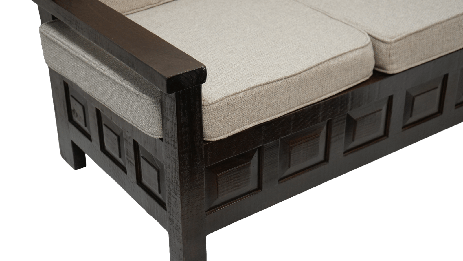 | Textura | Madera sólida, Cojines removibles y lavables, Acabado semimate en poliuretano, Estilo artesanal mexicano, Diseño contemporáneo con inspiración tradicional |
